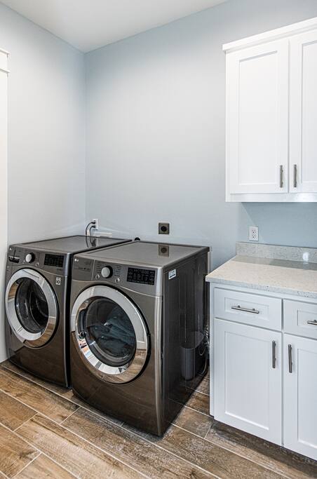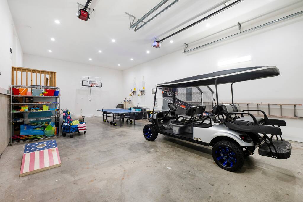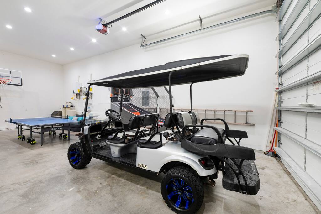 You may park up to 6 or 7 vehicles in the driveway- the driveway has a steep slope on one side but can be easily accessed by the other side of the drive- the golf cart and ping pong table is in the garage