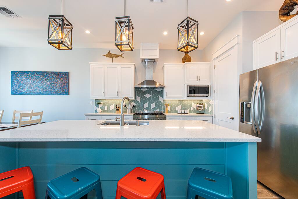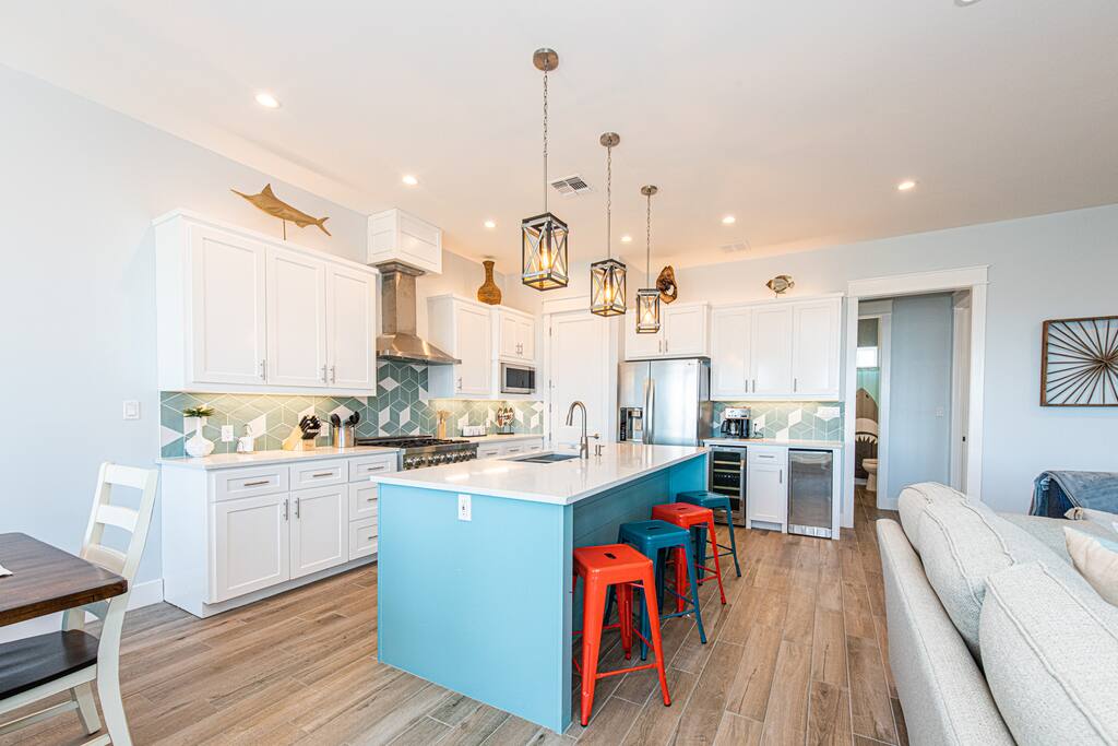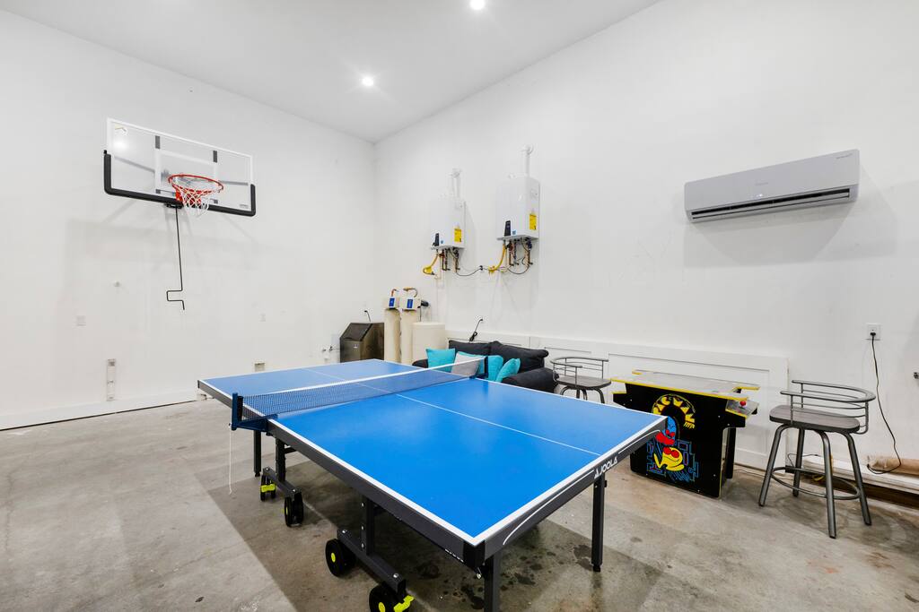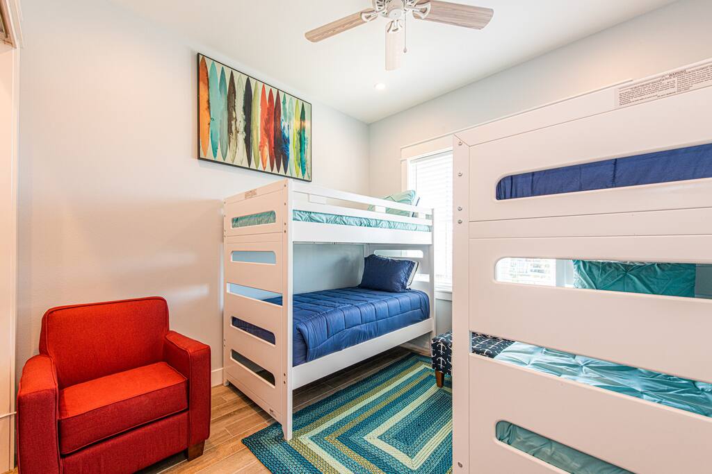 Our House consists of: Garage level- garage with 6 passenger golf cart and ping pong table. The garage was upgraded with air conditioning in 2025 with arcade games and even an indoor basketball hoop. Enjoy the backyard with a putting green and the pool 1st floor- 1 full bathroom and 1 king bedroom, pool, porch with outdoor furniture, and a wet bar 2nd floor- 2 full bathrooms, living room, dining room, kitchen, 1 King bedroom, 1 bunkroom (2 twin bunks), laundry room, balcony with gas grill and 1 tiny gaming room 3rd floor- 1 full bathroom (2 vanities), 2 king bedrooms, 1 bunkroom (1 twin bunk), wet bar, and one balcony with ocean views Crows nest- Has 6 chairs and the best views in Port A